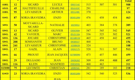 Lucile en U18 avec un 482, Christophe en S2 avec un 442, et un coup de mou pour Olivier en S2 avec un 523.